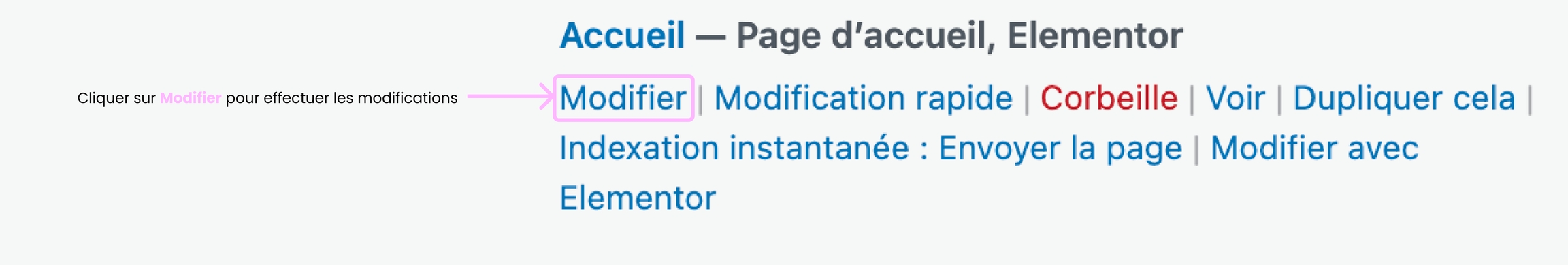 Cliquez sur "Modifier" pour ouvrir l'éditeur de page.